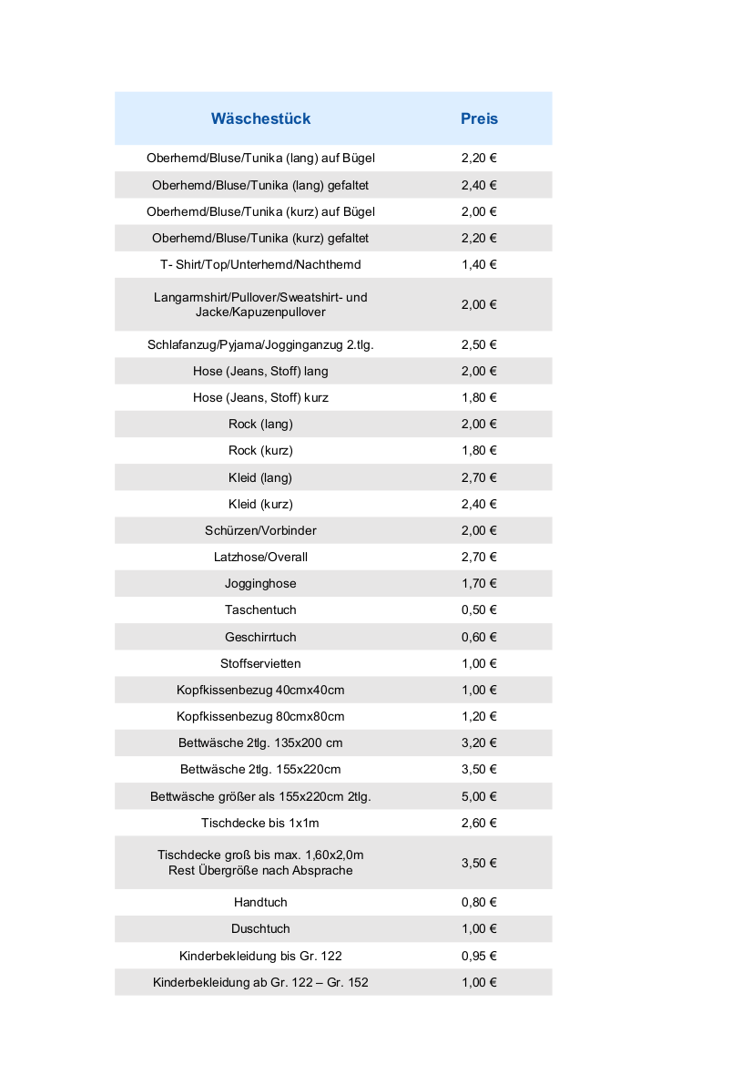 - Jedes zum Bügeln abgegebene Kleidungsstück/Wäschestück muss vorher vom Eigentümer auf Flecken oder Schäden geprüft werden.